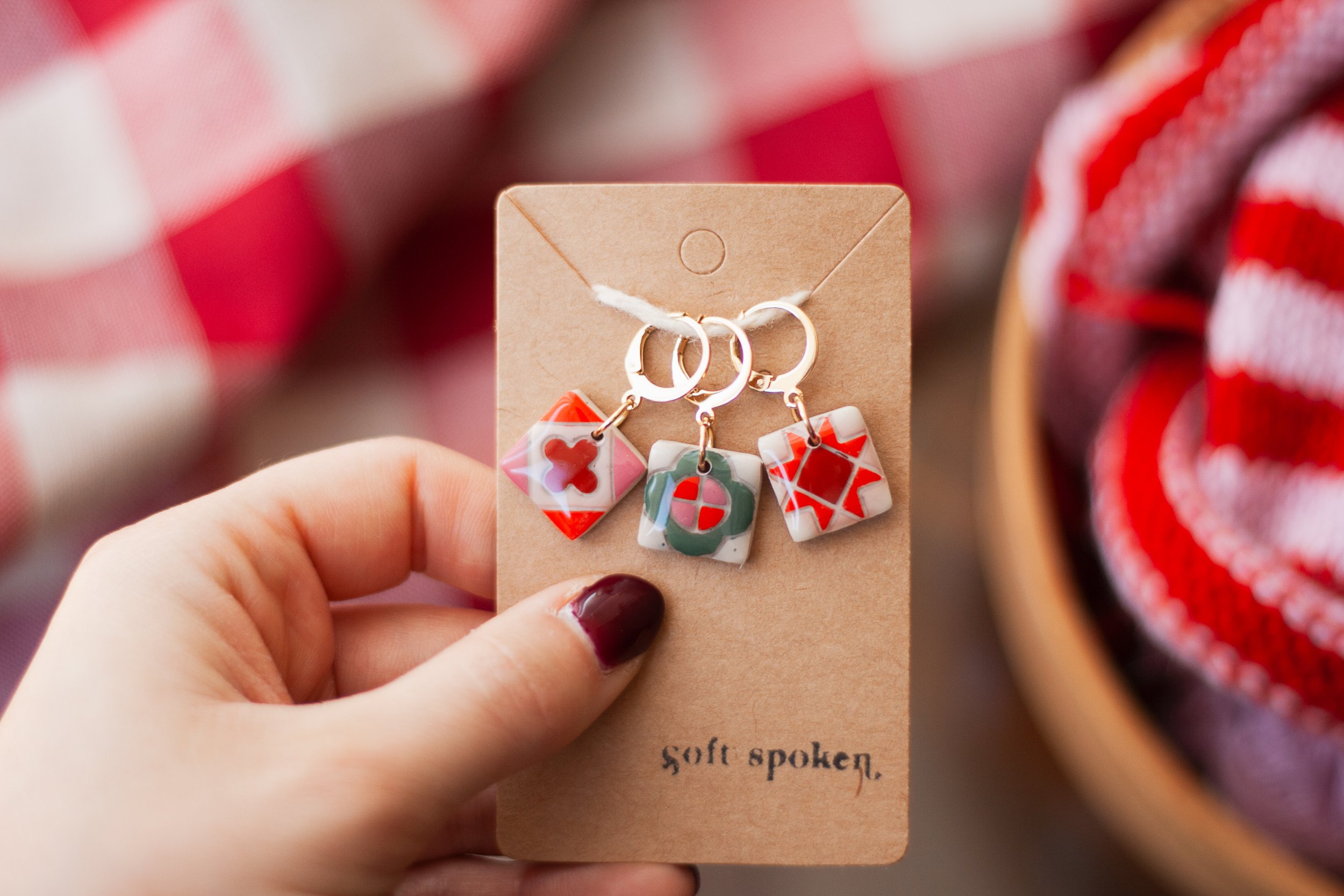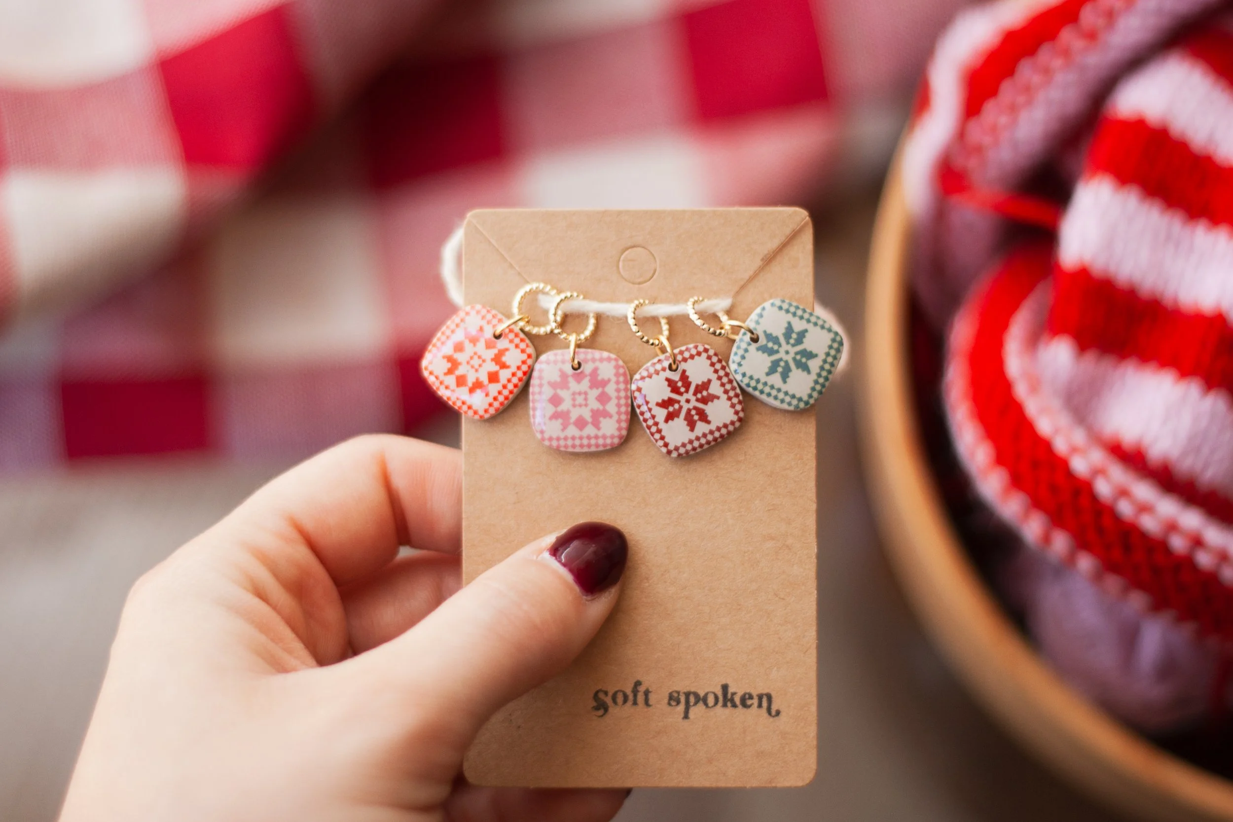 Store Categories: All Hair Accessories Earrings Buttons Progress Keepers Stitch Markers All | Hair Accessories | Earrings | Buttons | Progress Keepers | Stitch Markers | Shell Star Stitch Marker Set $28.00 Holiday Fair Isle Stitch Marker Set $32.00 Sold out Mixed Quilt Block Stitch Marker Set $38.00 Gingham Bow Progress Marker Set $38.00 Sold out Sardine Progress Marker Set in Neon Red and Blue $36.00 Sardine Progress Marker Set in Pine Green and Rose Pink $36.00 Quilt Block Progress Keeper Set in Rosy Pink and Pine Green $32.00 Quilt Block Progress Keeper Set in Neon Red Rosy Pink $32.00 Quilt Block Progress Keeper Set in Blue and Burgundy $32.00 Sold out