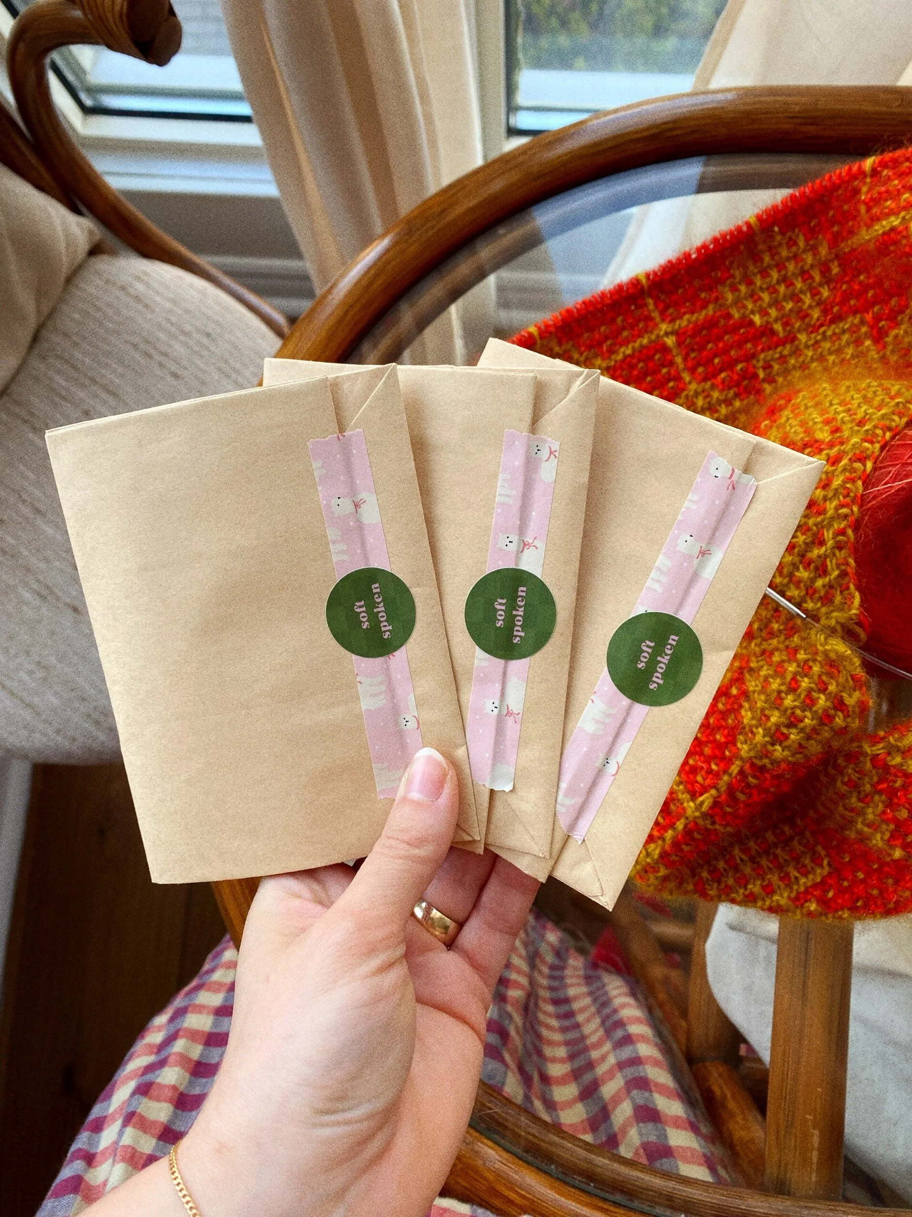 Each mystery bag contains one card with 2-4 stitch markers or progress keepers. Each package will be a surprise, but they’re different from those currently available in the shop, so there’s no risk of accidentally doubling up. All sets are unique but have a classic Soft Spoken vibe. There are so many charm possibilities, including quilt blocks, shells, hearts, flowers, and even a few lucky sardines! What will you find..?👀